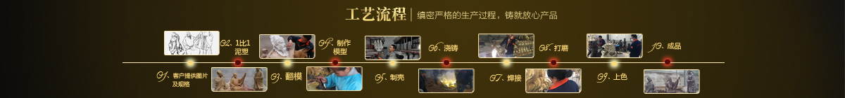 制作一件完美的鑄銅雕塑,最重要的步驟就是制作泥塑模型,然后再用工業(yè)硅膠拓印、翻模。所以泥塑的姿態(tài)、神情生動與否直接影響最終銅雕塑的品質(zhì)。所以我廠一直對泥塑模型的制作格外重視。我廠以雕塑為本,以藝術(shù)為根,挾中華文化之傳統(tǒng),偕歐陸藝術(shù)之風(fēng)韻,風(fēng)格獨(dú)特,盡顯淋漓盡致。我們本著大膽創(chuàng)新、勇于突破的精神,以追求卓越為導(dǎo)向,堅持寧缺勿濫為原則,并可依照您提供的要求,為您量身設(shè)計制作。我廠人才濟(jì)濟(jì),有智慧嚴(yán)謹(jǐn)?shù)墓芾戆嘧?,眾多年輕充滿激情、充滿創(chuàng)意的專業(yè)設(shè)計團(tuán)隊、有專業(yè)技術(shù)精湛的雕塑制作人才和專業(yè)的施工隊伍。他們不僅具深厚的文化藝術(shù)底蘊(yùn),更汲取當(dāng)代雕塑精華,博采眾家之長,作品既有嚴(yán)肅莊重寫實(shí)題材,也有輕松前衛(wèi)的抽象題材,表現(xiàn)手法上浪漫主義中不乏樸實(shí),現(xiàn)實(shí)主義中蘊(yùn)涵著激情,設(shè)計理念貫穿古今、融匯中西,深刻詮釋著藝術(shù)的精髓,把古典主義和后現(xiàn)代主義完美的融合,將雕塑藝術(shù)演繹為力的凝聚、美的體現(xiàn),讓人們感受到的不僅是一種藝術(shù)的浪漫與優(yōu)雅、粗獷與悲壯、更是豐富的優(yōu)秀藝術(shù)寶藏和文化傳統(tǒng),讓您在藝術(shù)與文化中穿流,在時空中飄蕩,使靈魂在藝術(shù)的海洋洗禮。 MORE+
